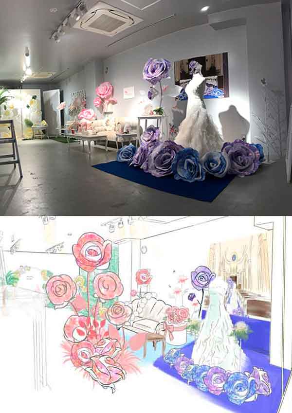 その飾り付けのラフ画がイメージボードになります。飾り付けの配置をイラストで示したものです。